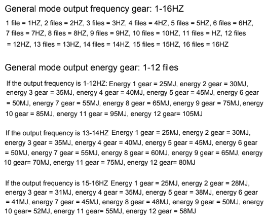 F stands for frequency in Hertz, and P for strength. P is what is called energy gear below: